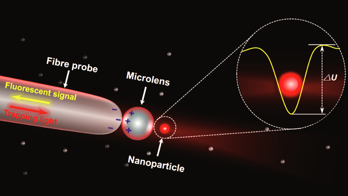 该项进展对单个纳米颗粒或生物分子实施精准、无损的三维操控,在组装有序纳米结构及研究生物分子间相互作用等方面具有非常重要的应用价值。传统的光镊技术由于光学衍射极限的存在,无法操控单个纳米颗粒或生物分子。近几年发展的等离激元光镊、光子晶体谐振腔等光操控技术可在二维平面内操控单个纳米颗粒或生物分子,但在三维操控上仍面临挑战。针对这一问题,李宝军团队提出了一种近场纳米光操控技术,通过在抛物线形光纤尖端附着一个具有高折射率的聚合物微透镜,使光汇聚在亚衍射极限范围,从而产生一个稳定的纳米光学势阱,突破了光学衍射极限,成功实现了对直径为85纳米的单个介质颗粒以及单个DNA分子的三维精准操控。