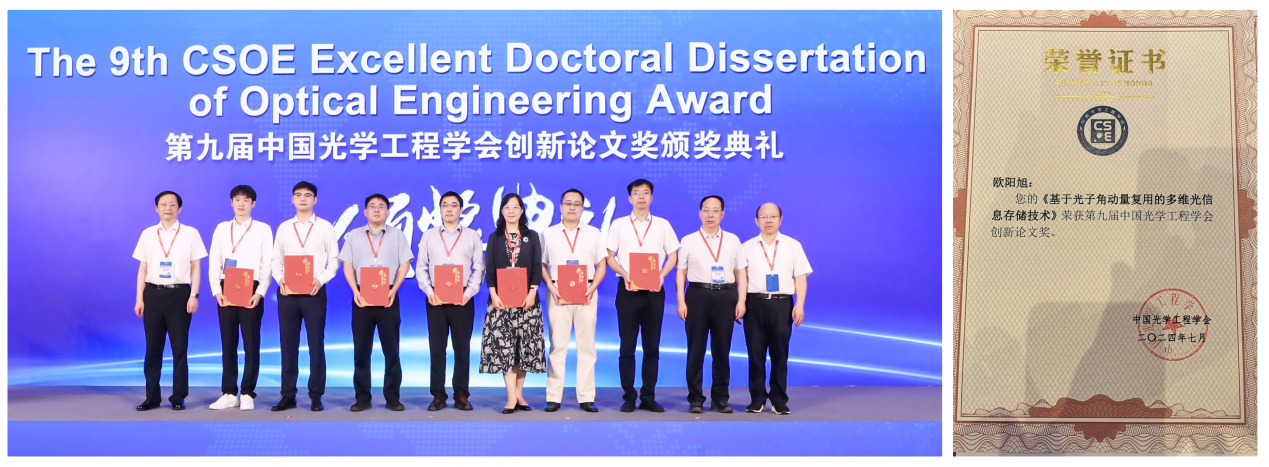 必威平台_必威(中国)一站式服务平台,融媒体中心讯 近日,第九届“中国光学工程学会创新论文奖”(全国光学工程优博)评选结果揭晓,此次参加评选的博士论文经过学位授予单位和行业专家推荐、评奖办公室初评、同行专家通讯复评和院士专家委员会终评四个阶段,终审工作于2024年7月完成,共评选出创新论文7篇,提名论文7篇。物理与光电工程学院(理工学院)2022届博士毕业生欧阳旭的学位论文《基于光子角动量复用的多维光信息存储技术》(指导导师:李向平教授)荣获创新论文奖,李向平教授荣获创新论文导师奖。