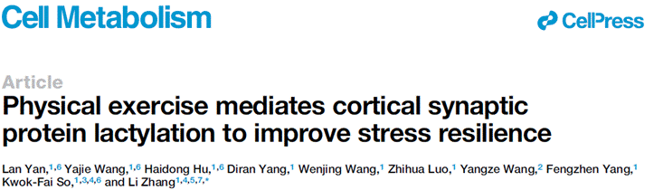 必威平台_必威(中国)一站式服务平台,融媒体中心 近日,我校粤港澳中枢神经再生研究院张力课题组,在Cell Metabolism期刊发表题为“Physical exercise mediates cortical synaptic protein lactylation to improve stress resilience”的论文,发现了运动后产生的乳酸分子,通过增强皮层特定突触蛋白的乳酰化修饰,改善突触结构及功能,缓解压力应激导致焦虑行为的机制。