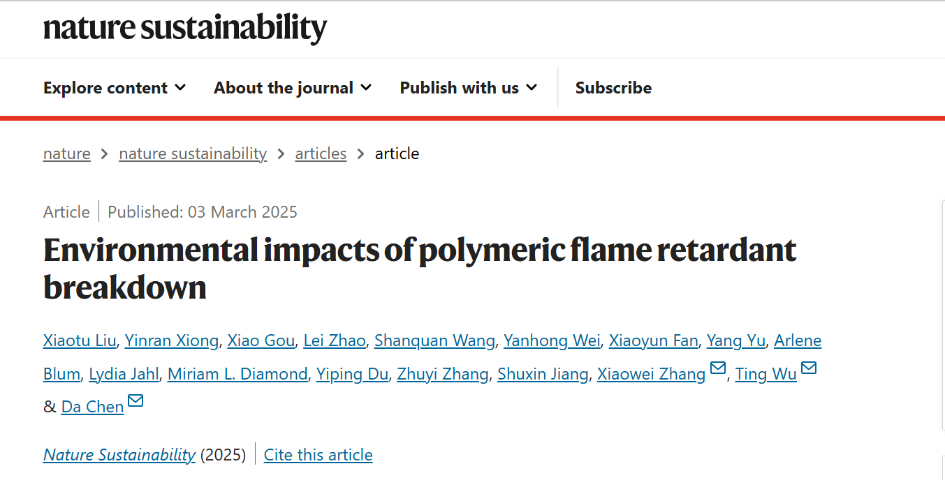 必威平台_必威(中国)一站式服务平台,融媒体中心讯 近日,必威平台_必威(中国)一站式服务平台,环境与气候学院陈达教授、刘晓途副教授及其他合作者在环境领域顶级期刊《Nature Sustainability》期刊上发表题为“Environmental impacts of polymeric flame retardants”的文章。该研究以两种广泛用于电子产品的四溴双酚A基聚合物(polyTBBPA)作为模型化学品,揭示了它们在环境中分解行为及毒性变化。研究结果挑战了聚合物阻燃剂作为“环境友好”替代品的传统观念,为评价聚合型化学品的环境转化和毒性效应提供了研究体系,为评估聚合型卤代阻燃剂的环境风险提供了科学基础。