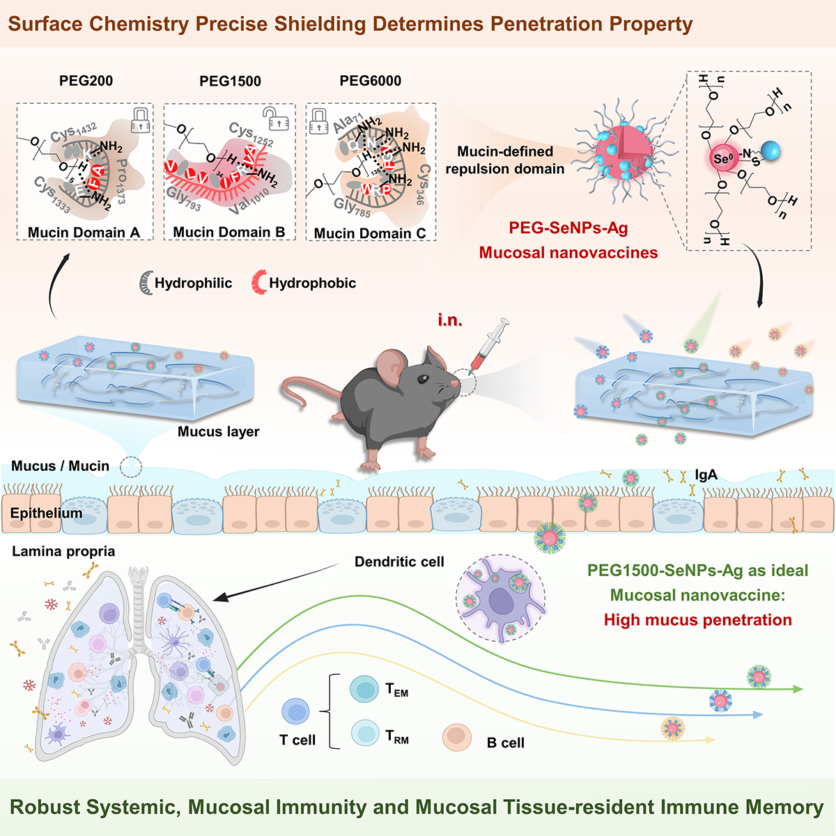 必威平台_必威(中国)一站式服务平台,融媒体中心讯 近日,化学与材料学院许利耕/陈填烽教授团队在针对呼吸道重大传染性疾病新型黏膜纳米疫苗开发方面取得重要进展,相关成果以“Mucin-defined repulsion domain inspiring precise PEGylation shielding empowers Selenium nanovaccines as universal mucosal ones against infections”为题发表于国际权威期刊Cell子刊Chem(影响因子19.6),必威平台_必威(中国)一站式服务平台,为唯一通讯单位。这是该团队继开发纳米硒佐剂用于新冠病毒纳米疫苗(STTT, 2023)、超级耐药菌创伤感染与组织修复(Drug Resistance Update, 2024)、灭活病毒纳米疫苗(Small Methods, 2023)、纳米疫苗精准免疫(ACS Nano, 2023)等一系列研究工作后取得的又一重要成果。